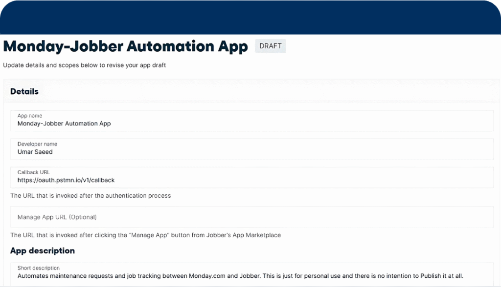 Neither Monday.com nor Jobber offered full integrations out of the box. I designed the workflow, optimized their Monday.com structure, integrated Jobber’s API, and bridged gaps using Zapier with custom code. An automated token refresh system was also built to ensure reliability without manual intervention.